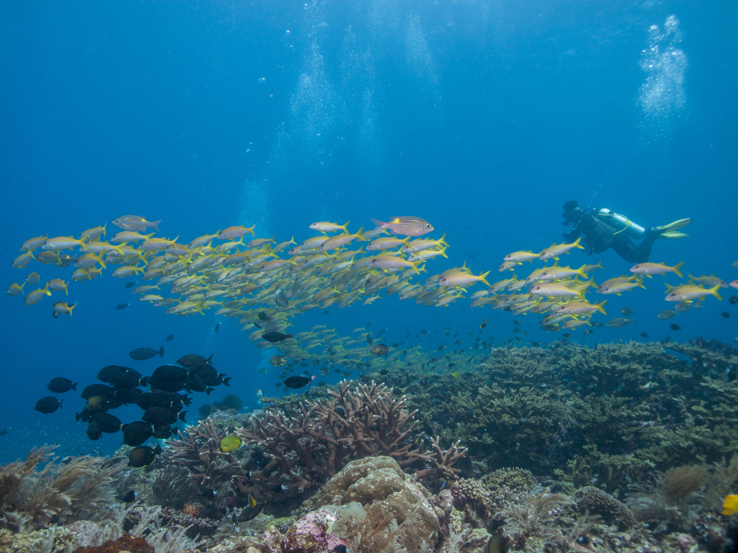 Das Halmahera Gebiet liegt östlich von Sulawesi und ist eine Inselgruppe der Nord-Molukken bestehend aus unzähligen kleinen Inseln und der Hauptinsel Halmahera. Wir haben Halmahera bei einer Tauchsafari mit der KLM Sunshine ausgehend von Bangka, Nord-Sulawesi erkundet. Die Tauchgänge sind unglaublich abwechslungsreich, hier kommt jeder auf seine Kosten. Egal ob Makro, Korallen, Steilwände, Großfisch, Schwärme von Barakudas. Hier kann man alles sehen.