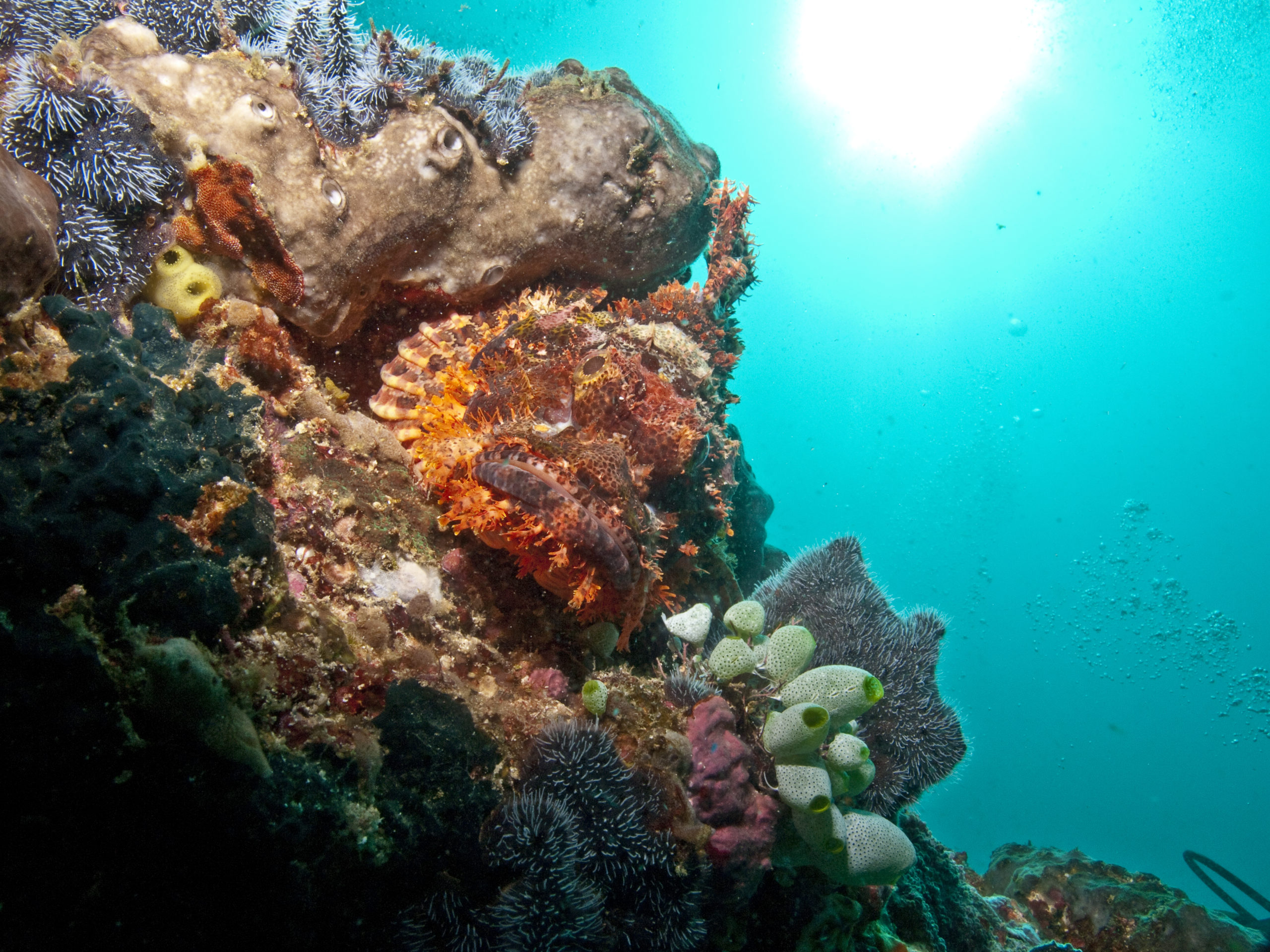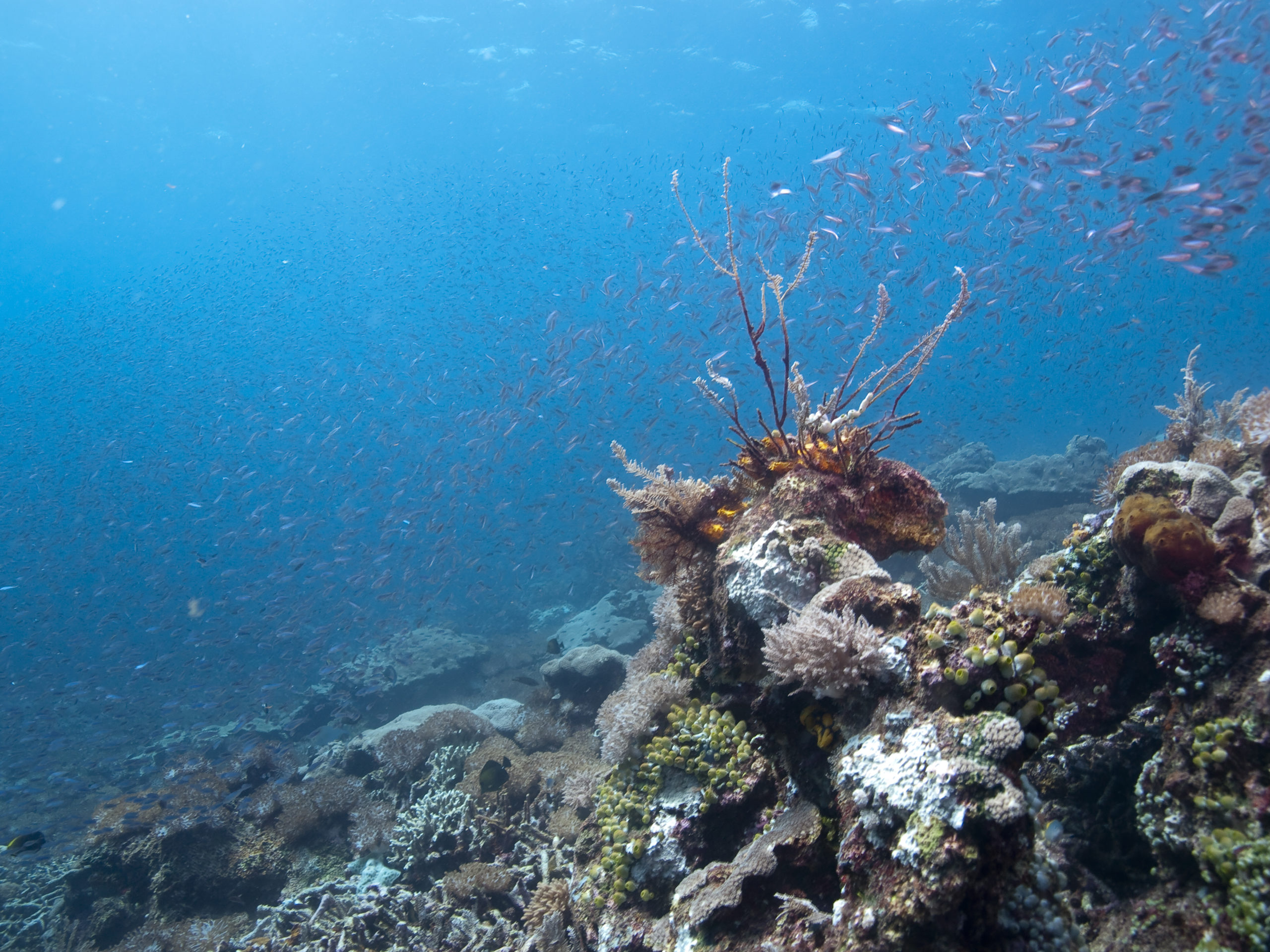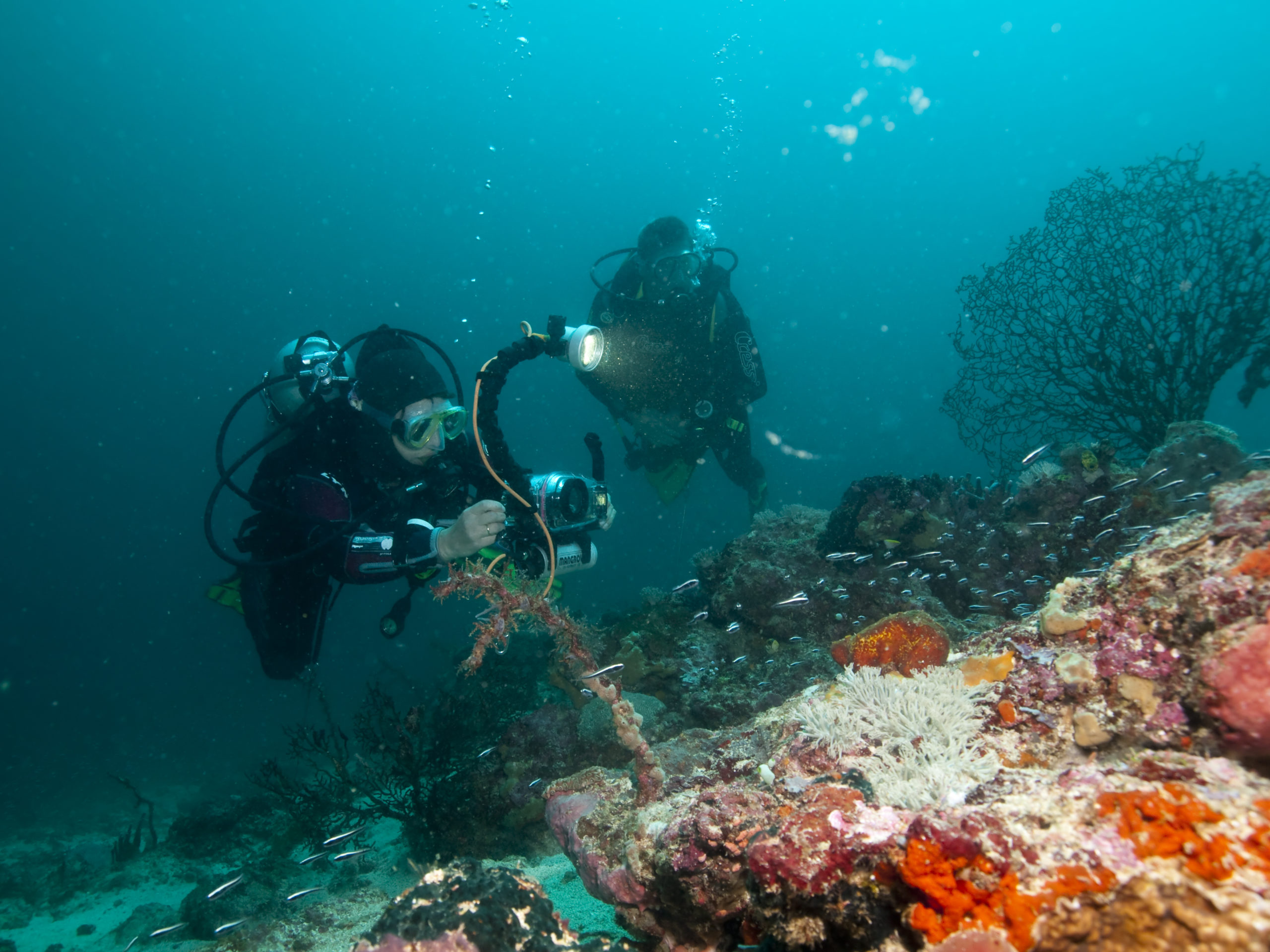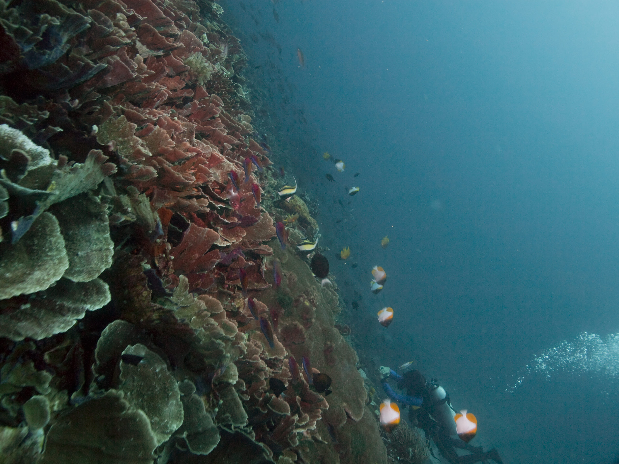 Tauchen in Süd-Sulawesi hat noch etwas Expeditions-Charakter. Es gibt ein paar kleine Tauchbasen (auch eine unter deutscher Leitung). Die spektakulären Tauchplätze sind oft Tief und strömungsreich. Wir sind in sehr kleinen Gruppen (eigentlich nur unsere Gruppe bestehend aus drei Tauchern) und einem Guide getaucht. Man sollte selbst Wissen was man tut und sich zutraut, wenn man dort taucht. Die Tauchgänge waren manchmal grenzwertig und beinahe alle Deko pflichtig. Die Ausfahrten fanden mit kleinen Holz-Fischerbooten statt.