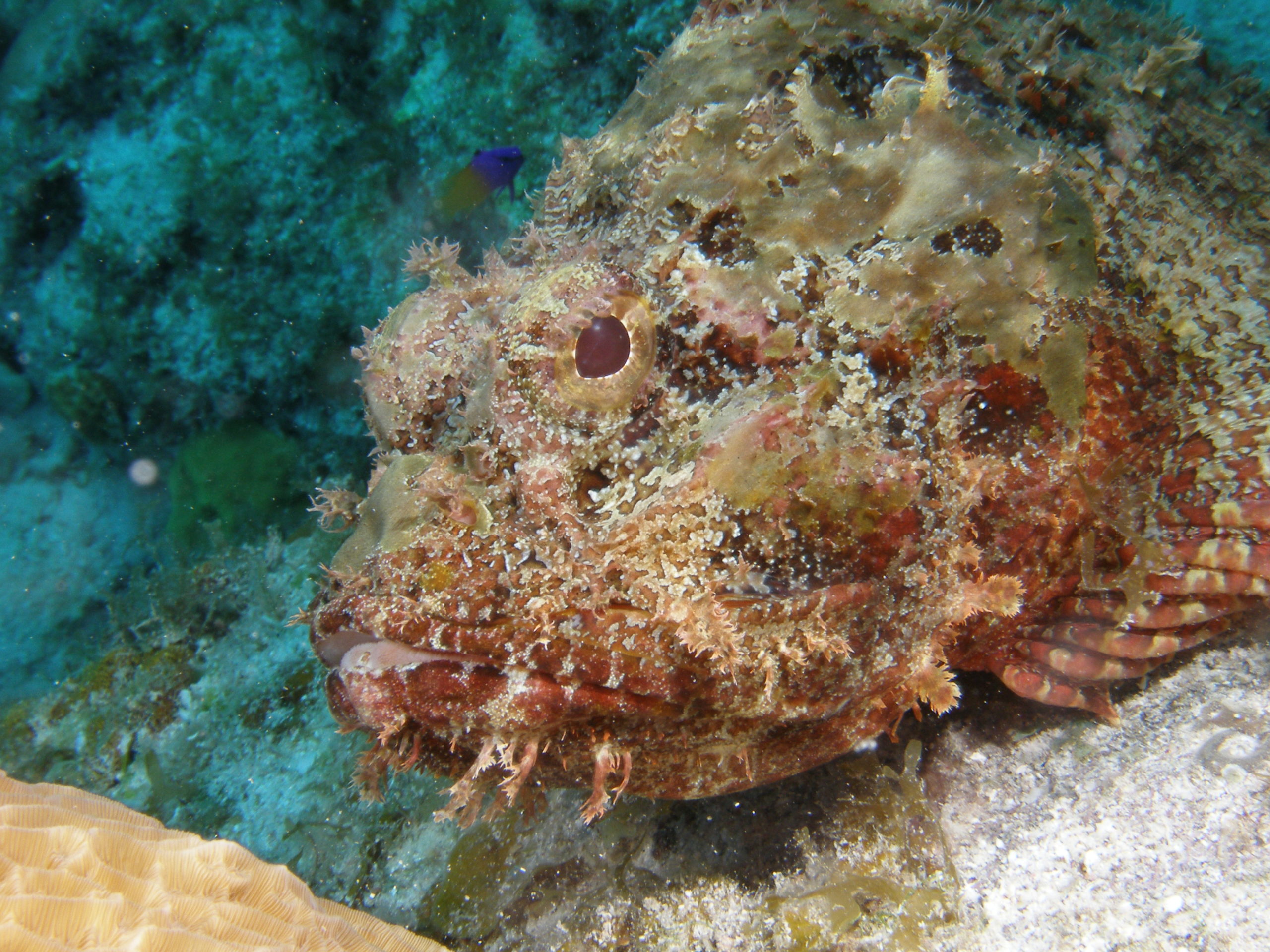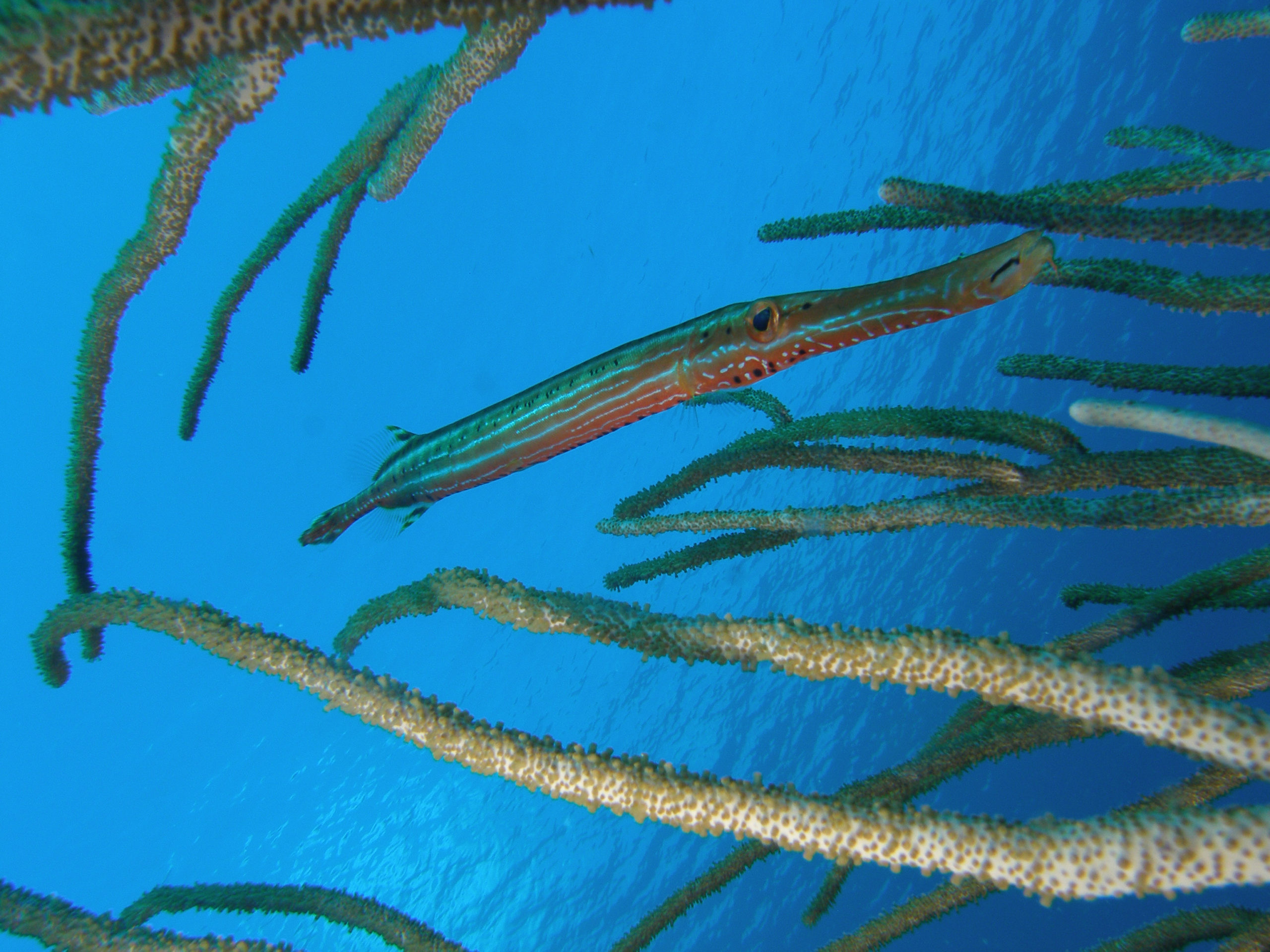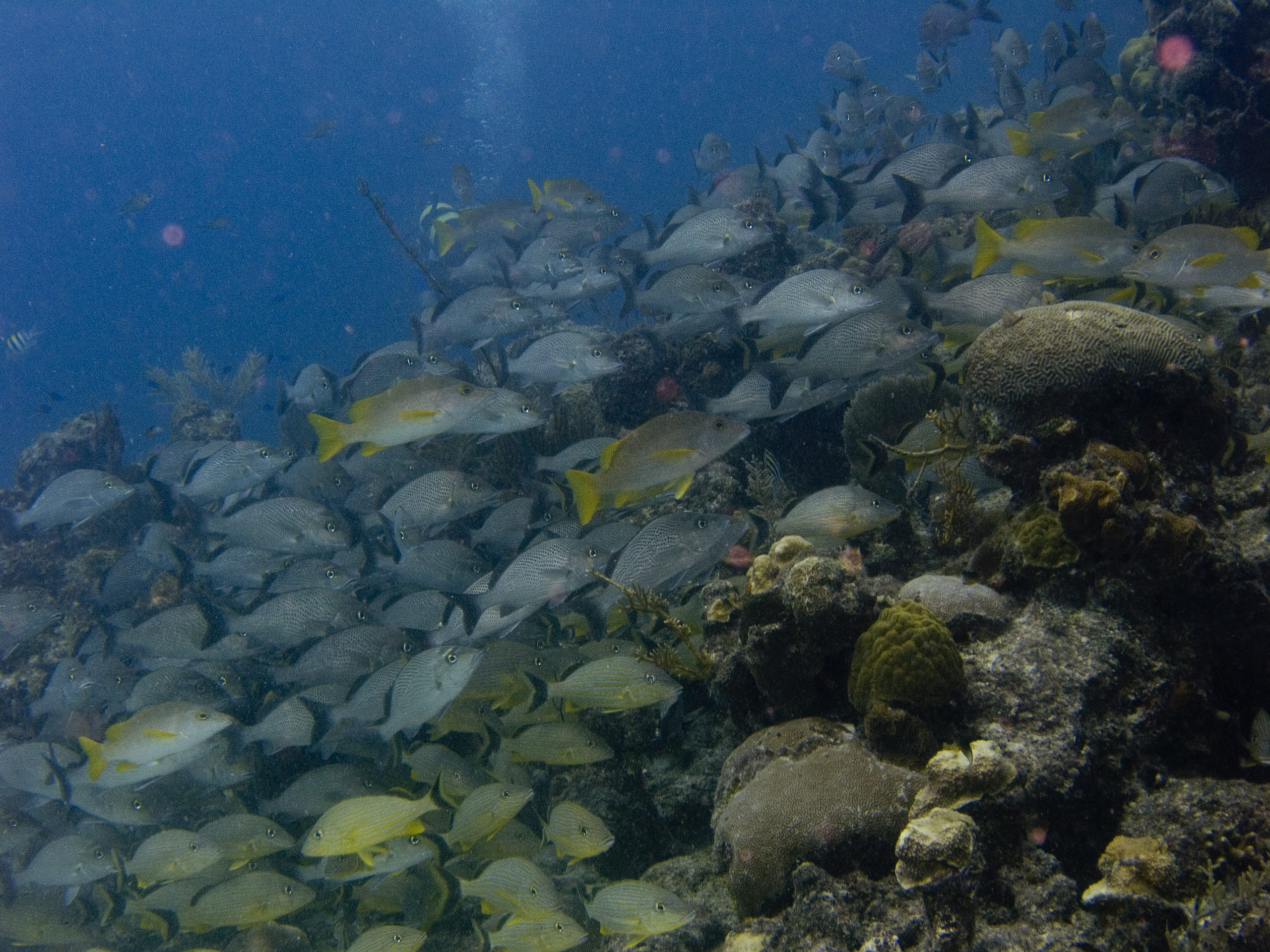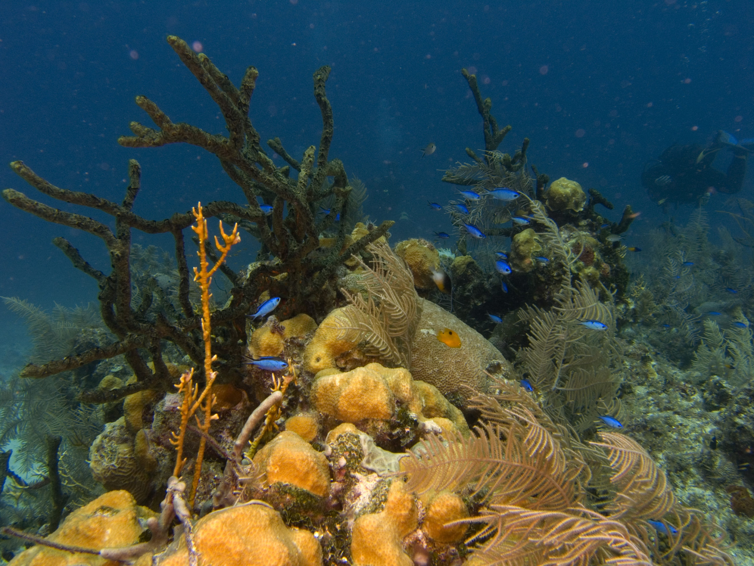 Kuba ist aus unserer Sicht nicht nur wegen des Tauchens eine Reise wert. Für uns stand Tauchen auch nicht im Mittelpunkt unserer Kuba-Reise. Über 3500 km sind wir innerhalb von 3 Wochen mit unserem Leihwagen gefahren und haben das Land erkundet. Zum Tauchen sind wir letztlich im Südwesten in Maria la Gorda gelandet. Dort gibt es ein vorgelagertes Saumriff, das zweitgrößte nach dem Great Barrier Reef in Australien übrigens. Auf der dem Land zugewanden Seite beträgt die Wassertiefe nur 8 bis 15m und es ist ein sandiger Boden mit einzelnen Korallenblöcken. Spektakulär sind die Höhlen und Canyons, die von der Innenseite durch das Riff auf die Aussenseite führen. Atemberaubende Lichteffekte führen durch das Riff direkt über das an der Ausseinseite befindliche Drop-Off. Diese Durchbrüche im Riff sind vor Maria La Gorda derart häufig zu finden, dass wir es am schönsten fanden immer wieder, quasi in Schlangenlinien, durch das Riff von Innen nach Aussen und wieder zurück zu tauchen. In den Canyons befinden sich kleine und große Langusten und Spinnenkrabben.