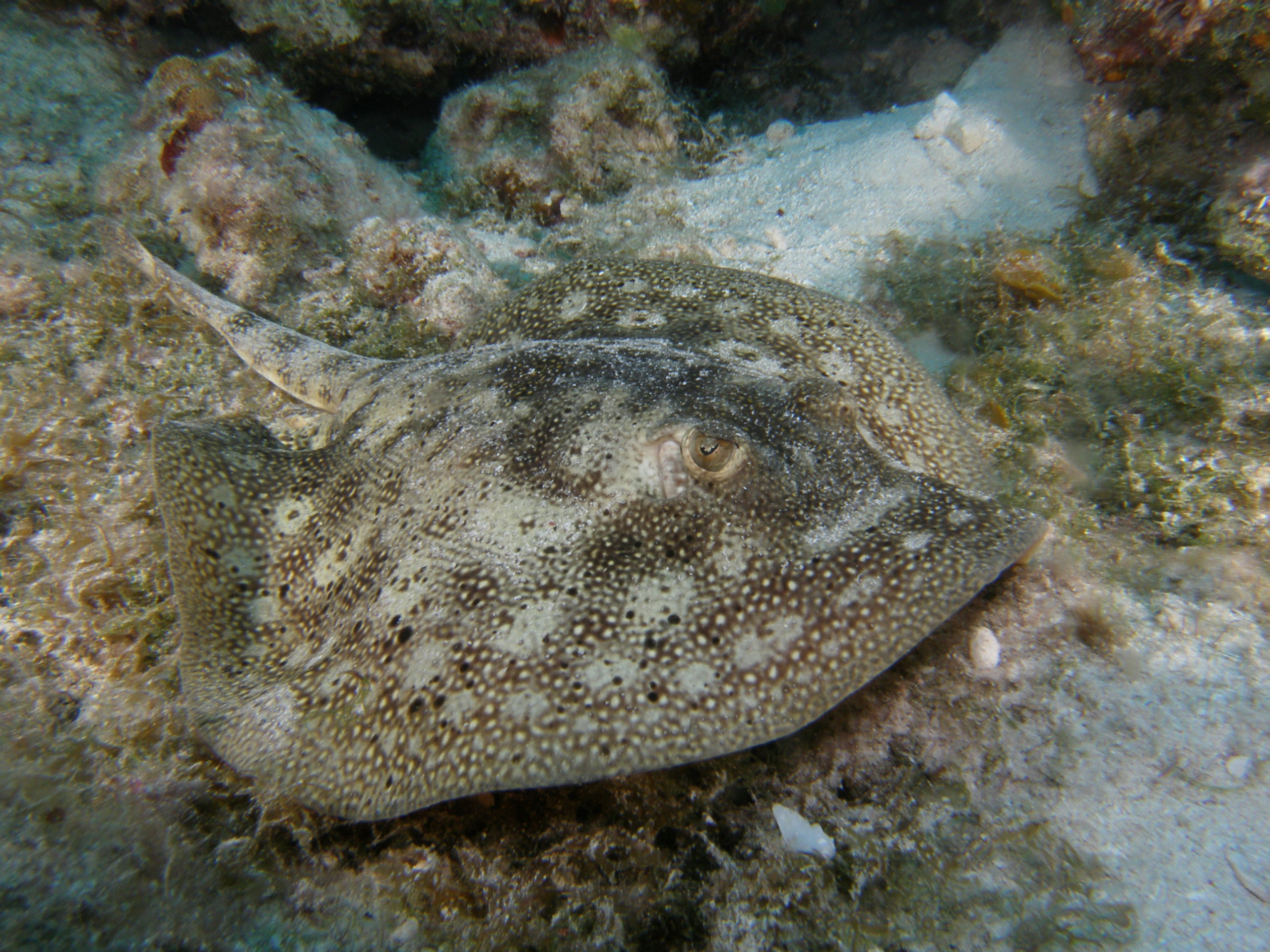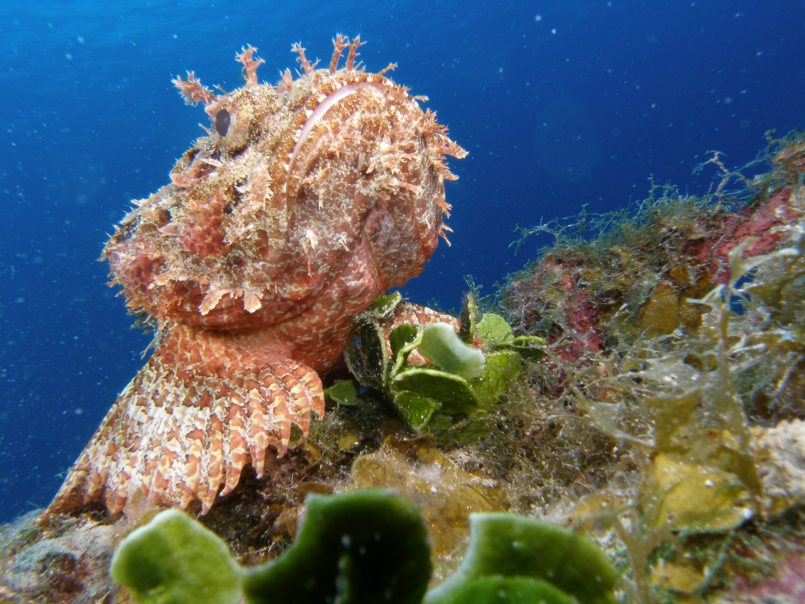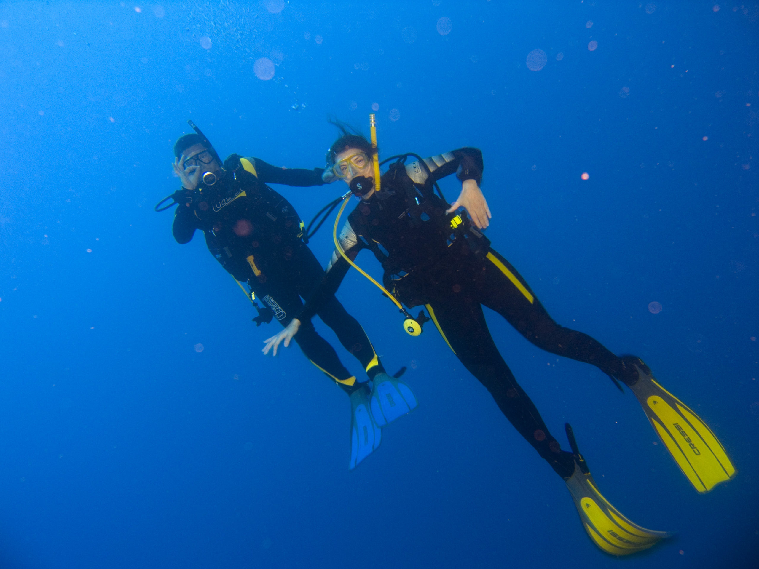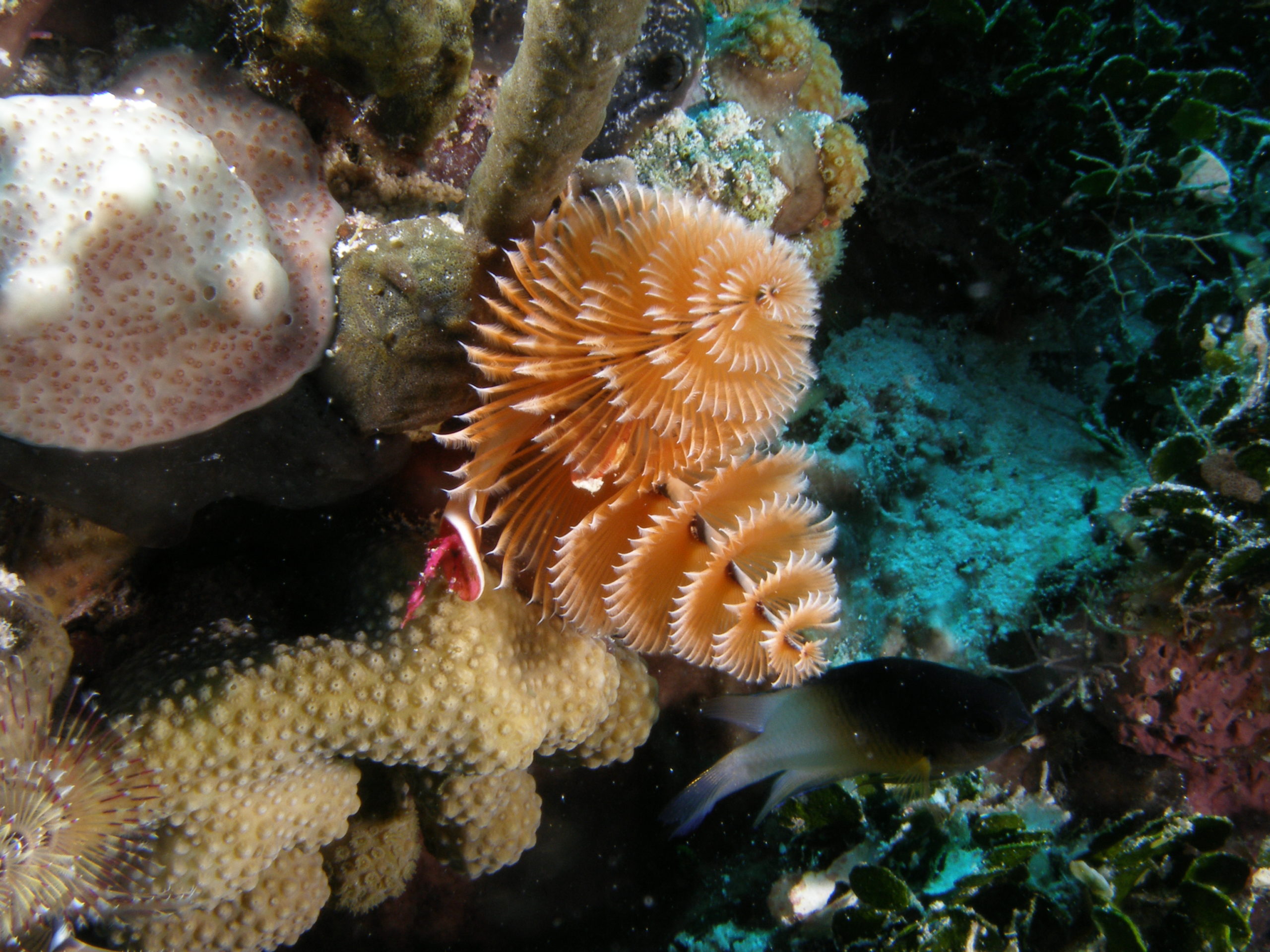 Kuba ist aus unserer Sicht nicht nur wegen des Tauchens eine Reise wert. Für uns stand Tauchen auch nicht im Mittelpunkt unserer Kuba-Reise. Über 3500 km sind wir innerhalb von 3 Wochen mit unserem Leihwagen gefahren und haben das Land erkundet. Zum Tauchen sind wir letztlich im Südwesten in Maria la Gorda gelandet. Dort gibt es ein vorgelagertes Saumriff, das zweitgrößte nach dem Great Barrier Reef in Australien übrigens. Auf der dem Land zugewanden Seite beträgt die Wassertiefe nur 8 bis 15m und es ist ein sandiger Boden mit einzelnen Korallenblöcken. Spektakulär sind die Höhlen und Canyons, die von der Innenseite durch das Riff auf die Aussenseite führen. Atemberaubende Lichteffekte führen durch das Riff direkt über das an der Ausseinseite befindliche Drop-Off. Diese Durchbrüche im Riff sind vor Maria La Gorda derart häufig zu finden, dass wir es am schönsten fanden immer wieder, quasi in Schlangenlinien, durch das Riff von Innen nach Aussen und wieder zurück zu tauchen. In den Canyons befinden sich kleine und große Langusten und Spinnenkrabben.